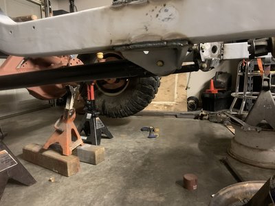 Over the last few days I took the axle, drained it, wire wheeled it and the control arms, and primed them both and painted the control arms.
