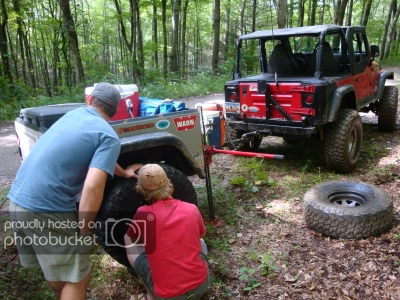 found out you can actually run no air in the trailer tires and it will still work and not come off the bead...but before getting on the pavement we had to change it out...